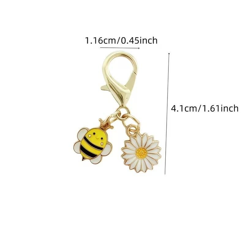Metal Honey Bee & Sunflower / Daisy Charm Keyring Keychain Gift UK