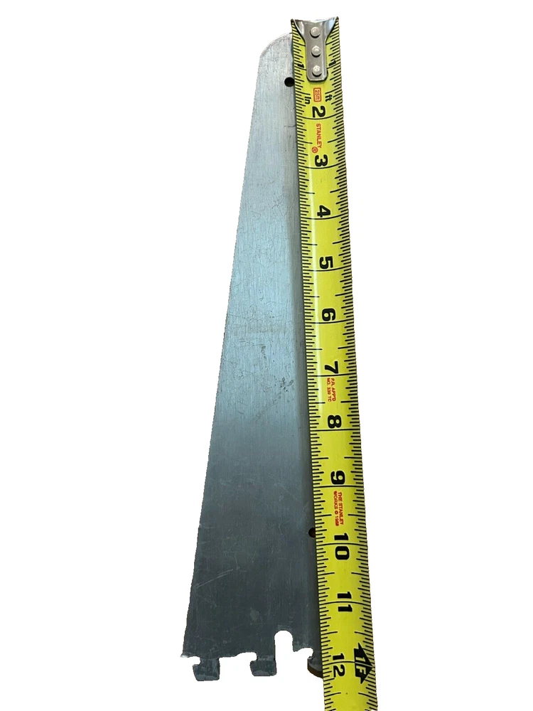 This is a 12-inch metal shelf bracket with dimensions of 12 x 2.5 inches. Made from durable steel, it features a heavy-duty design and corrosion resistance, making it ideal for wall shelving in garages, workshops, storage areas, or homes. Minor wear and scuffs are present but do not affect its functionality. Keywords: metal shelf bracket, 12-inch bracket, heavy-duty support, wall shelving bracket, steel shelf holder. Brand: Unbranded Type: Metal Shelf Bracket Material: Steel Dimensions: Length: 12 inches Width: 2.5 inches Condition: Pre-owned, with minor wear and surface scuffs. Application: Ideal for supporting wall shelving in storage spaces, workshops, garages, or home use. Features: Heavy-duty design, durable steel construction, corrosion resistance, and easy installation.