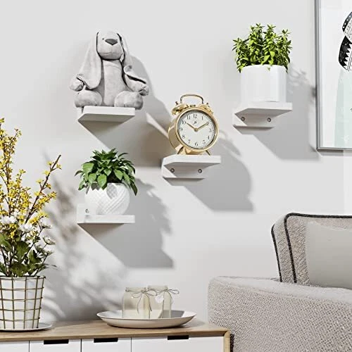 1. These mini floating shelves are perfect for adding extra storage and style to any room! The washed white finish looks clean and modern, while the sturdy paulownia wood holds up to 8 lbs—great for small decor, plants, or essentials. Easy to mount and versatile for bathrooms, kitchens, or offices. Fast delivery and a trusted seller make this set of 4 a fantastic buy!