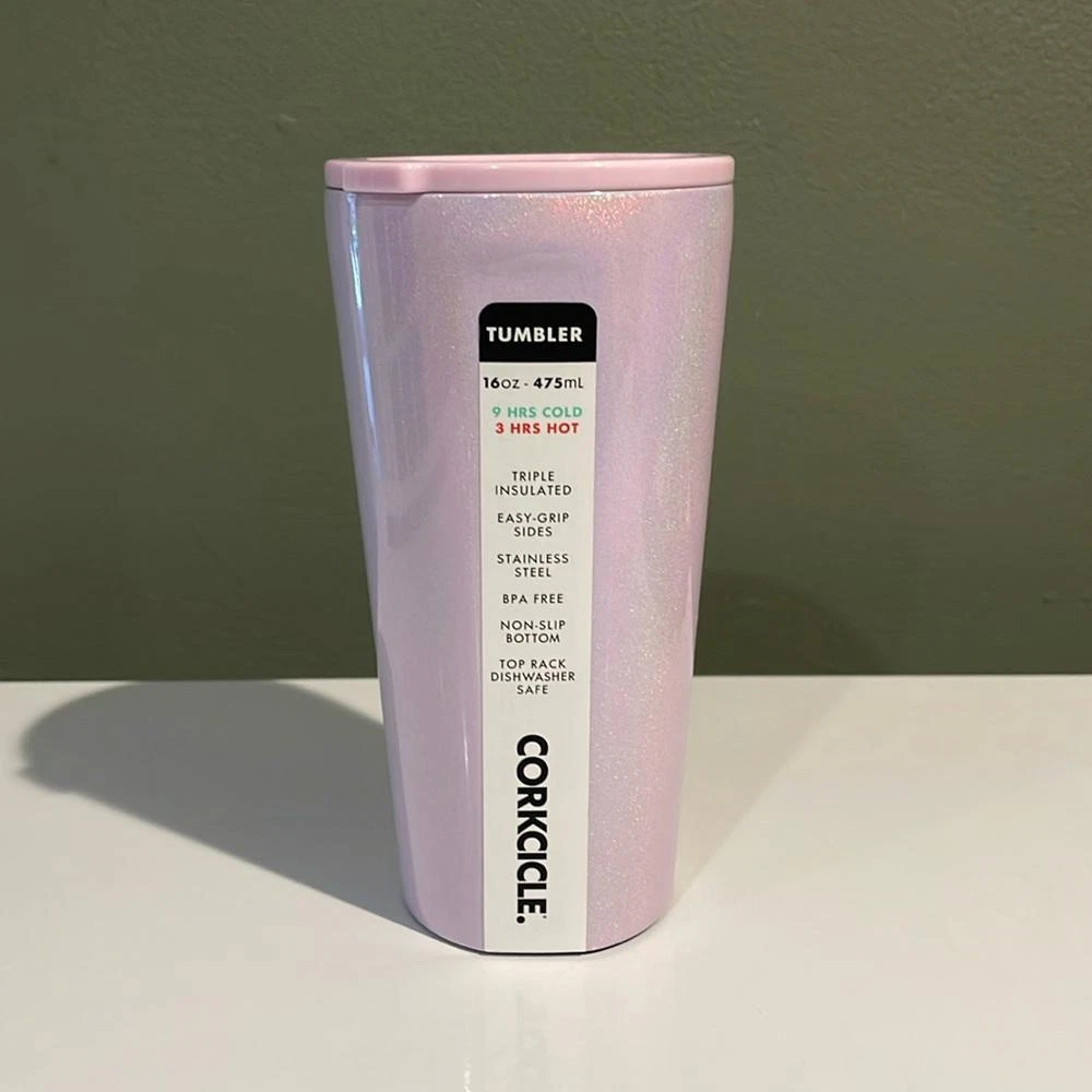 This stylish Corkcicle 16oz tumbler in a gorgeous sparkly lavender finish is both functional and fashionable. Made from durable stainless steel, it’s triple-insulated to keep your beverages cold for up to 9 hours or hot for 3 hours. The easy-grip sides make it comfortable to hold, while the non-slip bottom ensures stability. Perfect for on-the-go or at home, this tumbler is also BPA-free and dishwasher safe (top rack only). Ideal for those who value style and practicality in their drinkware. NEW Corkcicle 16oz triple insulated tumbler sparkling lavender pink color nwt Triple insulated Easy grip sides Stainless steel Bpa free Non slip bottom Top rack dishwasher safe