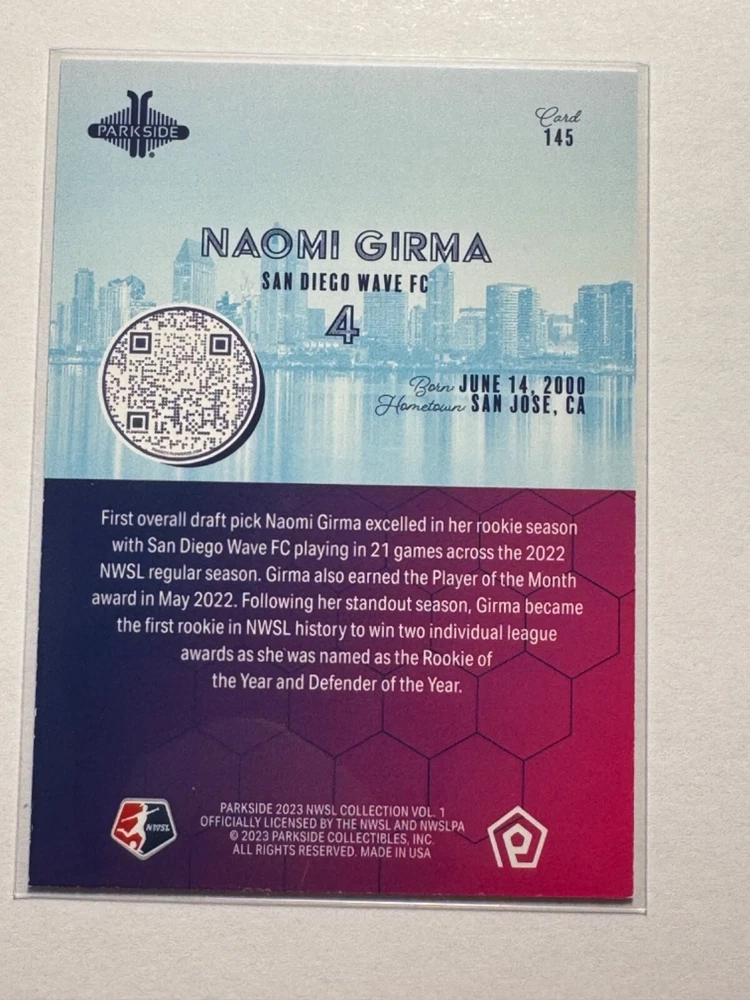 Naomi Girma 2023 Parkside NWSL Volume 1 Silver Foil San Diego Wave FC #145