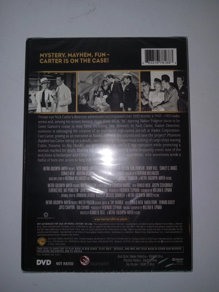 Immerse yourself in the captivating world of mystery and suspense with the Nick Carter Mysteries: Triple Feature DVD. This set includes three thrilling movies directed by George B. Seitz and Jacques Tourneur. The DVD is formatted in English language and has a runtime of 201 minutes. The Nick Carter Mysteries: Triple Feature DVD is a must-have for all mystery enthusiasts. The DVD is rated NR and is produced by Warner Archives. It is a great addition to any movie collection and promises to provide hours of entertainment. Get your hands on this DVD set and experience the excitement of the Nick Carter Mysteries.
