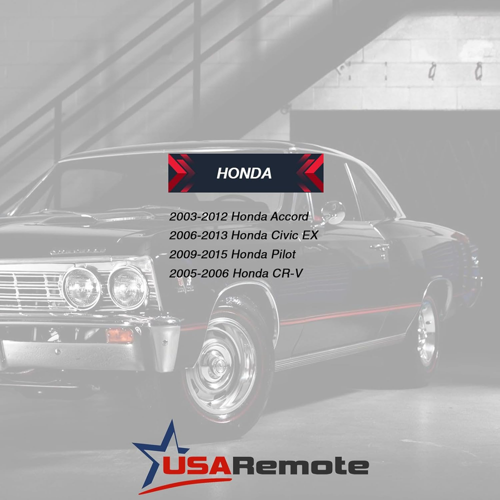fits Honda 2003-2014 Accord / 2006-2013 Civic EX / 2009-2015 Pilot /2005-2006 CR-V Swap your original blade into this new shell, NO CUTTING OR LOCKSMITH NEEDED! No electronics are included. This listing is for a plastic shell. See photos for installation instructions If your original remote has a transponder chip inside the shell you will have to glue it inside this shell! If you don't transfer the transponder chip the car will not start. Product Description No programming required Use existing cut key blade and transponder chip Case only, no electronics, screw driver to assist assembly Fits P/N: KR55WK49308, MLBHLIK-1T, N5F-A05TAA, N5F-S0084A, OUCG8D-380H-A Replacement Shell Kit for Honda: 2003 - 2012 Honda Accord 2006 - 2013 Honda Civic EX 2009 - 2015 Honda Pilot 2005 - 2006 Honda CR-V