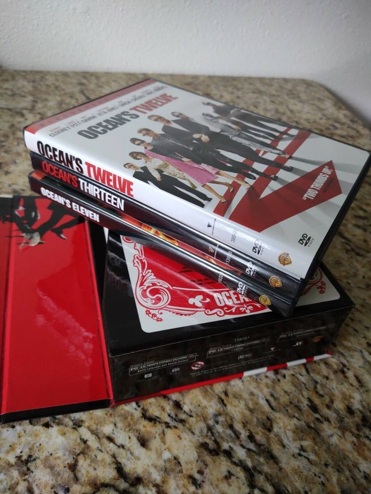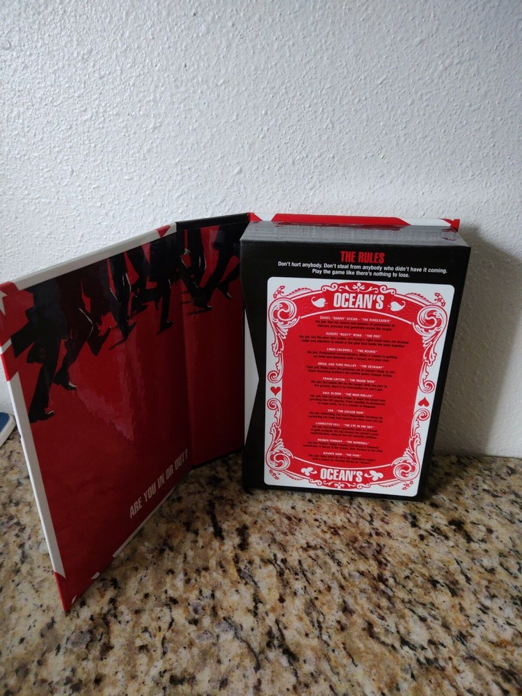 Oceans Eleven + Twelve + Thirteen Collection Box Set (DVD). Very good condition! Ocean's Eleven is a 2001 American heist comedy film directed by Steven Soderbergh and written by Ted Griffin. The first installment of the Ocean's franchise, it is a remake of the 1960 Rat Pack film of the same name. Ocean's Eleven features an ensemble cast, including George Clooney, Brad Pitt, Matt Damon, Don Cheadle, Andy García, Bernie Mac and Julia Roberts. The story follows friends Danny Ocean (Clooney) and Rusty Ryan (Pitt), who plan a heist of $160 million from casino owner Terry Benedict (García), the lover of Ocean's ex-wife Tess (Roberts). Upon release, the film was a success at the box office and with critics; it was the fifth highest-grossing film of 2001, with a worldwide gross of $450 million. Soderbergh directed two sequels, Ocean's Twelve in 2004 and Ocean's Thirteen in 2007, which make up the Ocean's Trilogy. Ocean's 8, a spin-off with an all-female lead cast, was released in 2018. Ocean's Twelve is a 2004 American heist comedy film directed by Steven Soderbergh. The second installment of the Ocean's franchise and the sequel to Ocean's Eleven (2001), the film stars an ensemble cast consisting of George Clooney, Brad Pitt, Matt Damon, Catherine Zeta-Jones, Andy García, Julia Roberts, Don Cheadle, and Bernie Mac. The film was released in the United States on December 10, 2004, and received generally mixed reviews from critics. It was a financial success, grossing $362 million and becoming the tenth-highest-grossing film of 2004. It is followed by Ocean's Thirteen (2007). Ocean's Thirteen (also written as Ocean's 13 ) is a 2007 American heist comedy film directed by Steven Soderbergh. It is the third installment in the Ocean's franchise, the sequel to Ocean's Twelve (2004), and the final film in the Ocean's Trilogy. The entire male cast reprised their roles from the previous installments, with Al Pacino and Ellen Barkin joining the cast, but both Julia Roberts and Catherine Zeta-Jones didn't return. Filming began in July 2006 in Las Vegas and Los Angeles, based on a script by Brian Koppelman and David Levien. The film was screened as an Out of Competition presentation at the 2007 Cannes Film Festival, and was released on June 8, 2007 in the United States. The film was well-received and grossed $311 million worldwide. Shipped with USPS Media Mail.