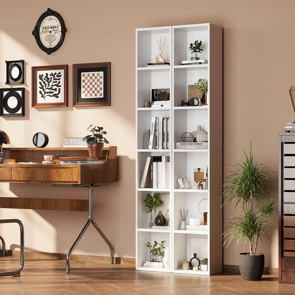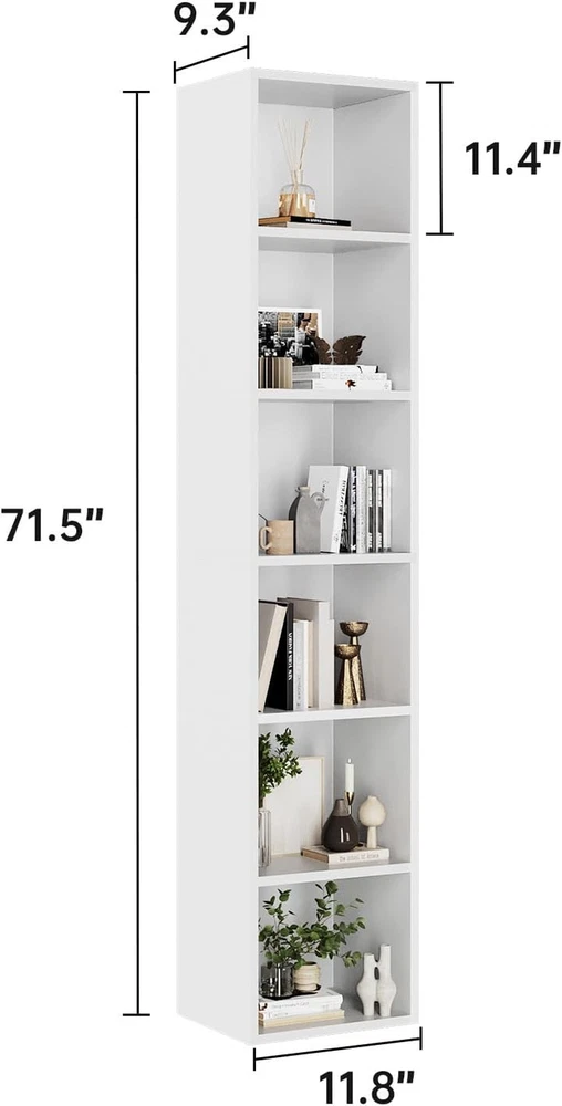 Oneinmil 71.5" Tall Narrow Bookshelf, 6-Tier Cube Display Rack, Modern Corner Bo