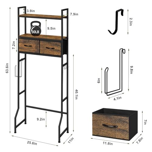 Return Policy Fast Delivery Trusted seller Over The Toilet Storage Cabinet with Fabric Drawers Bathroom Storage Over Toilet Fit Most Toilets, Rustic Brown Product Description 【Practical Drawer Design】 Soft fabric drawer with reinforced base. Easily pull the handle of the above toilet storage to conceal clutter. 2 large drawers can organize and hide your bathroom supplies safely and privately. The detachable drawer folds flat for easy storage when not in use. 【Toilet Paper Holder & Hooks】 Our toilet storage rack also offers 4 detachable stainless steel hooks, and a toilet paper holder , this over the toilet shelf provides abundant space for storing bathroom essentials like towels, toiletries, perfume, shaving foam, brush, shampoo, and potted plants. 【Not Just A Toilet Rack】 Toilet shelf dimensions: 26 × 7.8 ×63.5 inches. It can be used as a bathroom shelf over toilet to organize toiletries and shower items. In addition, it can be used as a storage organizer for the laundry room, balcony, bedroom, kitchen, or living room to help you organize and store your daily needs. 【Reliable Construction】 Stability is key, and this over the toilet Storage cabinet prioritizes it with a widened bottom design and anti-falling device, ensuring a secure and balanced structure. When the ground is uneven, you can adjust the feet to keep the over toilet storage rack stable and protect the floor from scratches. 【Easy Installation】Use multifunctional bathroom organization without the worry of complicated installation. Clear and concise instructions, coupled with the included tools, make the installation process straightforward, even for those less inclined toward DIY projects. Shipping Returns Payment Shipping Shipping is FREE to all addresses other than APO/PO boxes in the lower 48 states. All our stock ships from US-based warehouses. Shipped via USPS or UPS (depending on location and package weight) Unless stated otherwise, all orders will ship within 24-72 hours of your payment being processed. Check our feedback to see the great reviews of FAST shipping we offer. Returns Seller does not accept returns Payment We currently accept payment via eBay managed payments only. Once payment is cleared, we will dispatch your shipment within 1-3 business days. Please refer to the "Shipping" tab for more information regarding shipping speed to your destination.