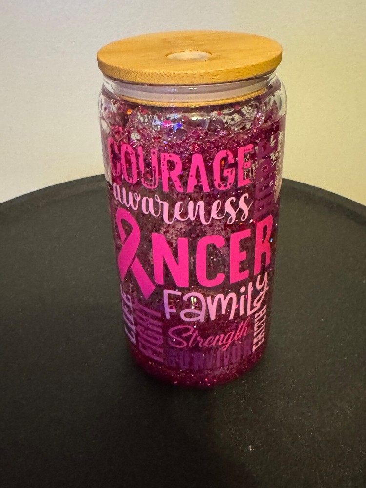 Custom made 16oz Glass tumbler. These are personally my favorite as I made them while recovering from my own personal battle with breast cancer!