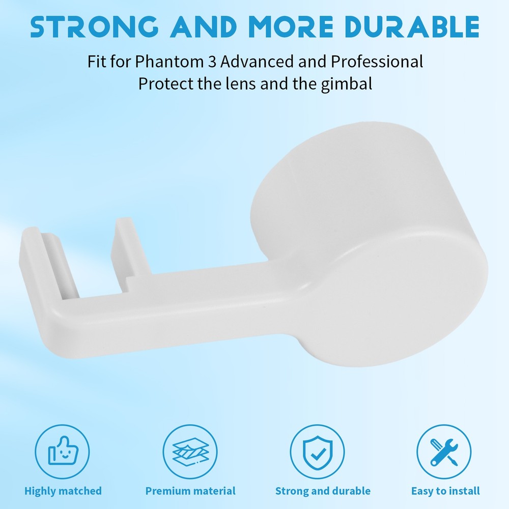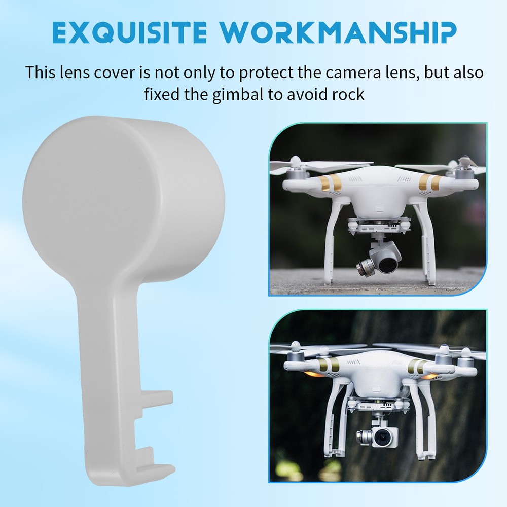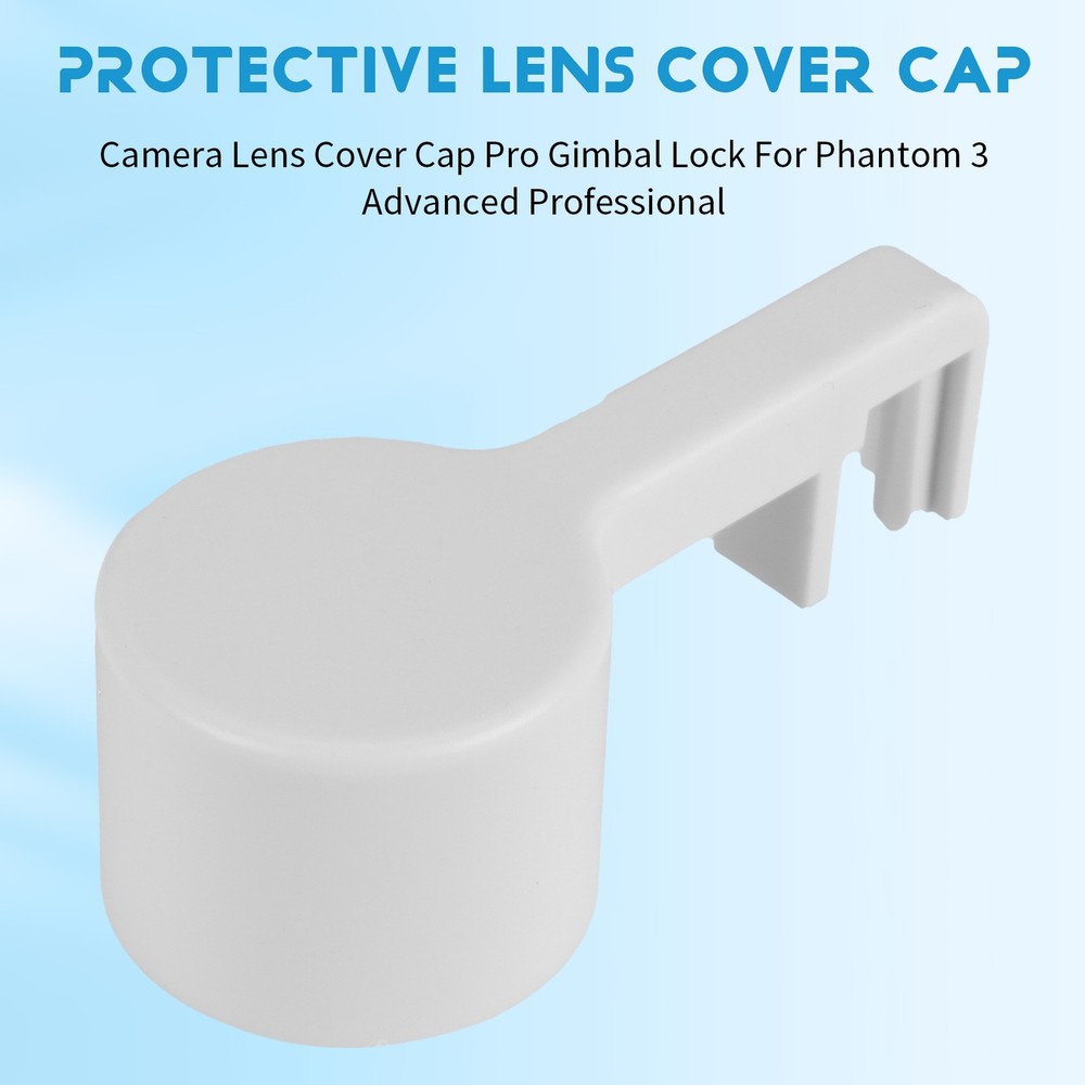 Camera Lens Cover Pro Gimbal Lock For Phantom 3 Advanced Professional K4Q5 This lens cover is not only to protect the camera lens, but also fixed the gimbal to avoid rock Protect the lens and the gimbal for Phantom 3 Advanced and Professional Material:Plastic size:7.5*3.5cm/2.95"*1.38" Color:White Package Included:1 x Camera Protective Lens Cover Cap Note: Light and different displays may cause the color of the item in the picture a little different from the real thing. The measurement allowed error is +/- 1-3cm.