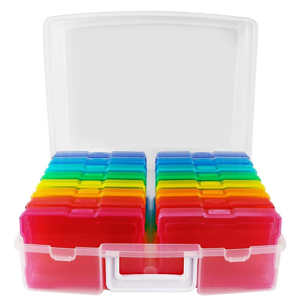 1. Extensive use: The perfect solution to Organize & Photographs, Craft Supplies, important documents and office supplies; The organizer keeps your house or office clean and tidy 2. Protective: Snap-tight closures keep the contents secure, and protect your pictures or cards; Extra depth allows for storage of larger 3. Capacity: Includes 16 of the 4" x 6" photo cases, each case holds 100 photos, holds up to 1600 4" x 6" photos, convenience to use and take with 4. Exterior Box Dimensions: 12.0 x 14.8 x 5.1 inches; Photo Case Dimensions: 4.75 x 6.70 x 1.23 inches 5. Customer First: If you are not satisfied after purchase, please feel free to us; If there is a quality problem, we will give you a satisfactory answer, we will be sincere to serve you