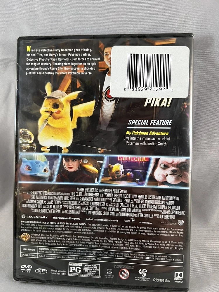 Pokémon Detective Pikachu (DVD, 2019) New & Sealed- Unsure Of Code- S17-2