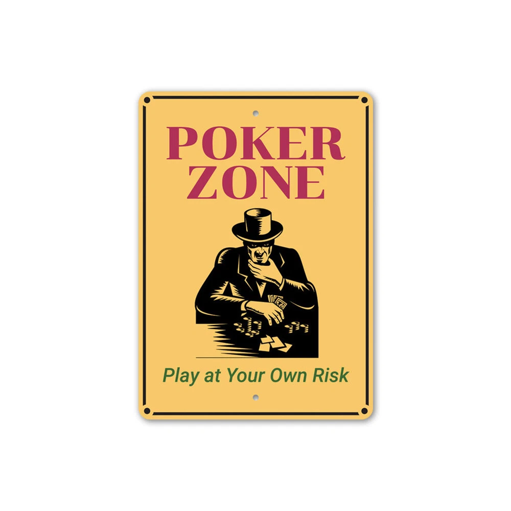 The Lizton Sign Shop Product Description Poker Zone, Play at Your Own Risk, Playing Cards, Gaming Room Metal Sign **there may be slight variations in color and text spacing, however your sign will be very similar to the image above. Quality Aluminum Street Signs Sign Information Aluminum Brand New Sign Comes with rounded corners and pre-drilled for easy hanging. We use the highest quality materials - 100% USA-made! Great Gift Idea - Our signs truly make a one of a kind gift. Personalize the sign with the text you want to add. Custom text for the sign can be sent to us via email. A BRAND NEW SIGN!! All of our street signs are made of premium materials. The sign itself is made of aluminum and will never rust providing years of enjoyment indoors and outdoors. No Cheap plastic!! The Lizton Sign Shop specializes in quality personalized custom aluminum signs for any occasion. These make the perfect sign for any man cave, office, basement, garage, college dorm, kids bedroom, game room, bar, pub, tavern or countless other places. *Colors may vary slightly from one computer screen to the next but the image should be very close. All content and designs are subject to copyright and may not be reproduced in any form. Payment Methods We would prefer payment to be made through paypal but we also accept all major credit cards. If you select the credit card option please contact us after you make your purchase and we can walk you through the steps to make a secure payment. Return Policies We will accept returns within 30 days of the purchase date. The buyer is responsible for any costs to return the item or items. Returns will only be accepted for items that were damaged in shipping or if we made an error in the manufacturing of your item, i.e. spelling error.