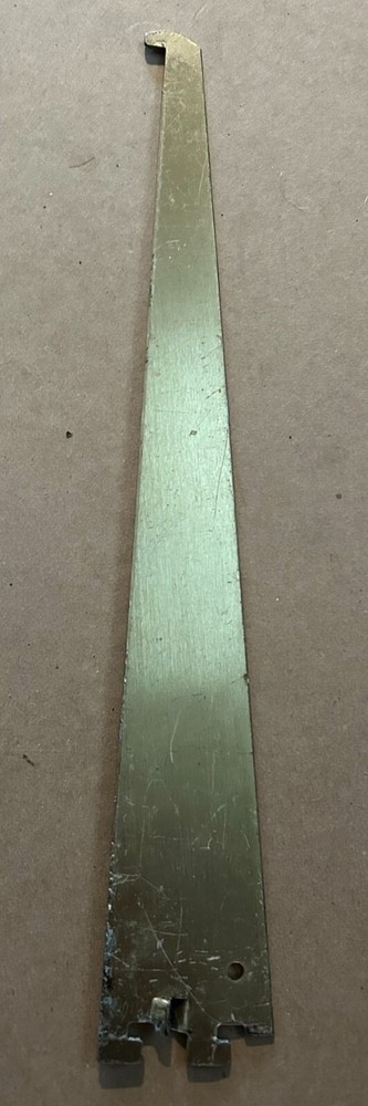Upgrade your shelving with this vintage REEVE 12" x 2" metal shelf bracket in a gold finish. Known for its durability and stylish design, this heavy-duty bracket is perfect for home, office, or garage use. The "REEVE" branding adds a touch of authenticity to this piece. Minor wear and scratches enhance its vintage appeal without compromising its functionality. A great addition for those who appreciate quality and style in their shelving solutions.