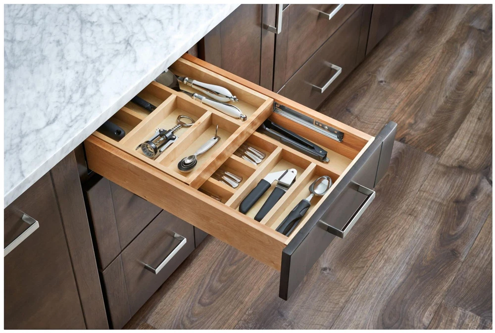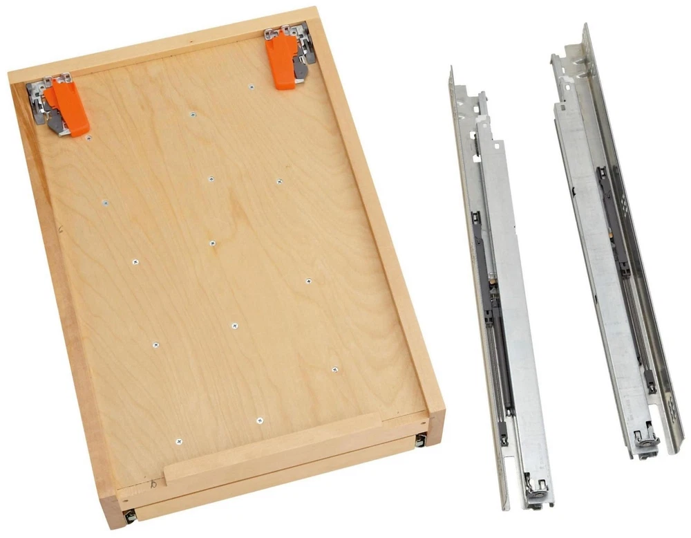 Powered by Frooition All Categories Rev-A-Shelf 4WTCD-18HSC-1 Wood Classics 15" Base Cabinet Two Tier Kitchen Cutlery / Silverware Full Replacement Drawer Organizer System with Soft Close Overview Item Description Double up your drawer space with Rev-A-Shelf's two-tiered drawer system. This drawer box comes pre-assembled and ready to install into your existing cabinet drawer opening. Options exist to have slides included or you can supply your own. Features: Undermount soft close full extension concealed slide system For 1-1/2 inch face frame cabinet construction only Top-tier slides back inside of cabinet on ball-bearing drawer slides Pre-assembled drawer box replaces your existing drawer Simply add your own drawer front (not included) Designed for a cabinet drawer opening width of 15" Adjustable door mount brackets are included and required for operation Fully assembled maple wood construction for durability Entire drawer fits into existing cabinet drawer space 90 lb full-extension BLUMOTION slides with soft-close Covered by Rev-A-Shelf's limited lifetime warranty Specifications: Depth: 21-3/4" Height: 4-5/16" Width: 15" Minimum Opening Width: 15" Minimum Opening Height: 4-1/2" Includes: One (1) wood two-tier drawer system One (1) pair of slides Mounting hardware Why Choose BuildInc? OUR PROMISE TO YOU About Us At Build, we promise to provide the best selection we can, most competitive pricing, and unmatched customer service. Our store has quality home improvement products from trusted manufacturers like Moen, American Standard, Delta, Kraus, Kichler, Progress Lighting, Schlage, Kwikset, Baldwin, Broan, NuTone, Air King, and Rev-A-Shelf. With over 200,000 home improvement products for you to choose from, we have just what you need to get your project done. Fast & Free Shipping We promise to make it our priority to get you your items as fast as we can. We ship from 440 warehouses around the country, ensuring that your product will get to you as soon as possible. We know you're eager to get your hands on your new purchase, we would be too. As a bonus, most items ship for free. Returns We are happy to accept returns of unused or defective items for a refund within 30 days from the date of delivery. For returns outside 30 days, please contact our Customer Service team to go over our options. For full details, please view the Shipping and Payments tab above. To initiate a return simply go to the eBay Returns Portal and submit a return request. We ask that all items be returned with all original components via a traceable method. Once your return is received and processed, we will quickly get your refund or replacement issued. If for any reason you are unsatisfied with your purchase or for product or warranty questions, please contact Customer Service team for assistance. More Items! View more great items! About Us | Shipping | Returns | Contact Us | FAQ | Collections | Special Offers! Powered by Frooition Frooition Frooition | No-js Template | eBay design, eBay store design, eBay shop design, eBay template design, eBay listing design (ver:froo_no_js) This listing is currently undergoing maintenance, we apologize for any inconvenience caused.
