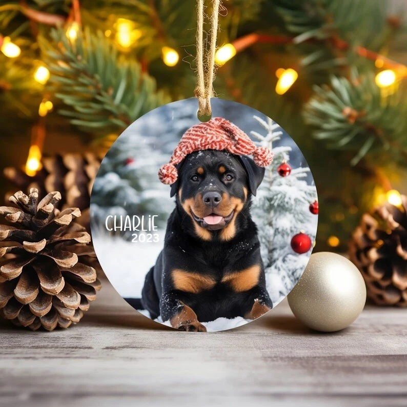 Rottweiler Christmas Ornament, Custom Rottweiler Ornament, Personalized Rottweiler Christmas Ornament,Christmas Ornament,Rottweiler Ornament If you need to buy more, please inbox us We have two material options (Ceramic & MDF), please read the product description as below to choose your favorite options. MDF Ornaments 1-sided design. Print type: Sublimation printing. Crafted from durable MDF with a high-gloss plastic finish so your designs last a lifetime. Shapes: Round, star, heart and oval . Product Dimensions: Circle & Heart, 2.75” tall; Oval & Star, 3.25” tall. Ships with a festive gold cord for easy hanging. CERAMIC Ornaments 125" (3mm), 2.75" height (circle), thick high-quality porcelain One-sided print Hole for the hanging string Gold-toned string included Available in 4 shapes - Snowflake, Star, Heart and Circle The height of the hole can slightly deviate Shipping, Return and Refund Policy On average, merchandise is produced and shipped from our facility 2-4 business days after purchase. Standard Shipping: 5-7 working days for USA. Please contact us if you have any dissatisfaction with the item you buy so that we give you the solution. It is easier for us to handle your issue if you send us the proof like an image. We can replace another within 30 days without fee if the item is defective, damaged, or an error is made on our end.