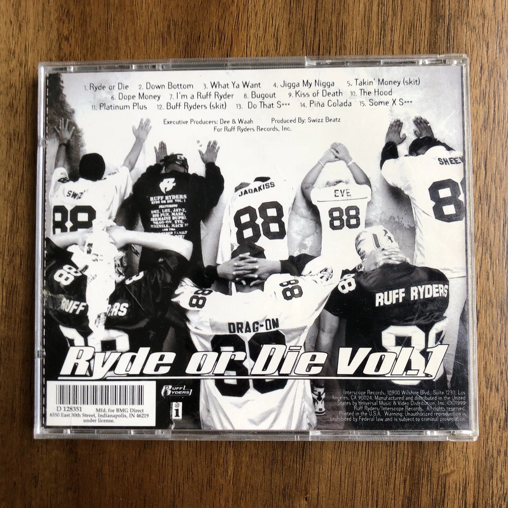 This Ruff Ryders Ryde Or Die Volume 1 CD from 1999 features the legendary hip-hop group's first album release. With an explosive mix of gangsta and hardcore rap, this CD is a must-have for any fan of the genre. The CD is in near mint condition and comes in a standard jewel case with multicolor artwork. The first edition of this album includes the Parental Advisory label and features the iconic Ruff Ryders Entertainment logo on the cover. The inlay is also in near mint condition, making this a great addition to any music collection. Get ready to ride or die with the Ruff Ryders, and own this classic album today.