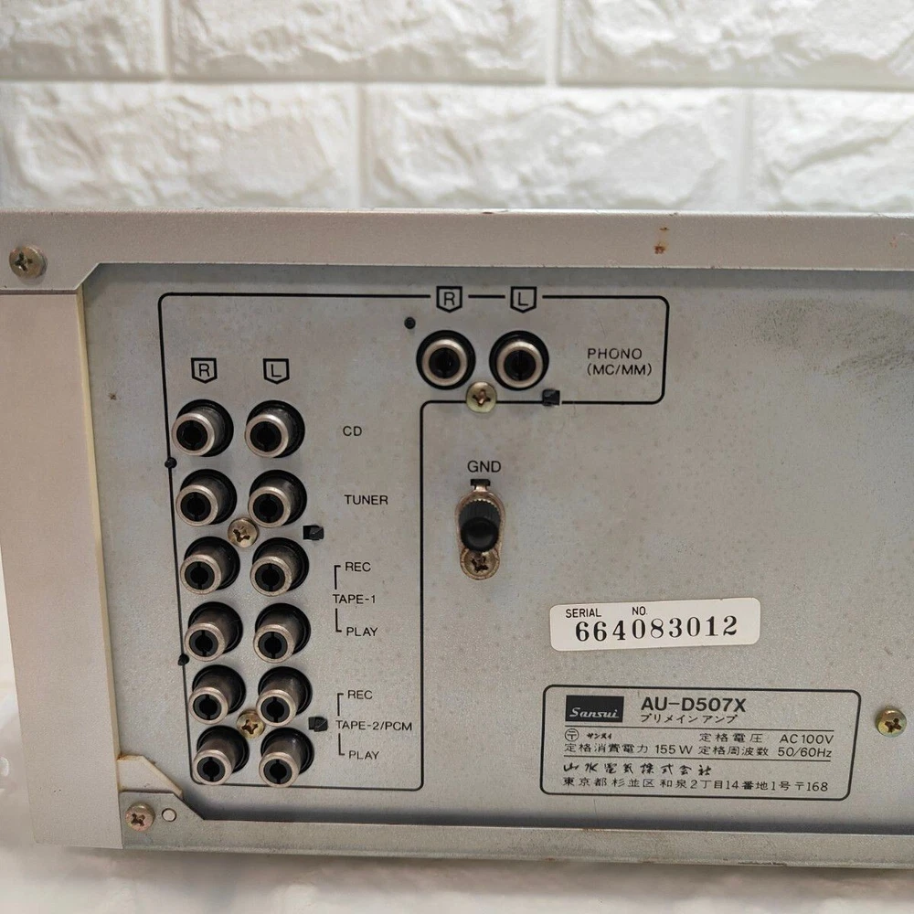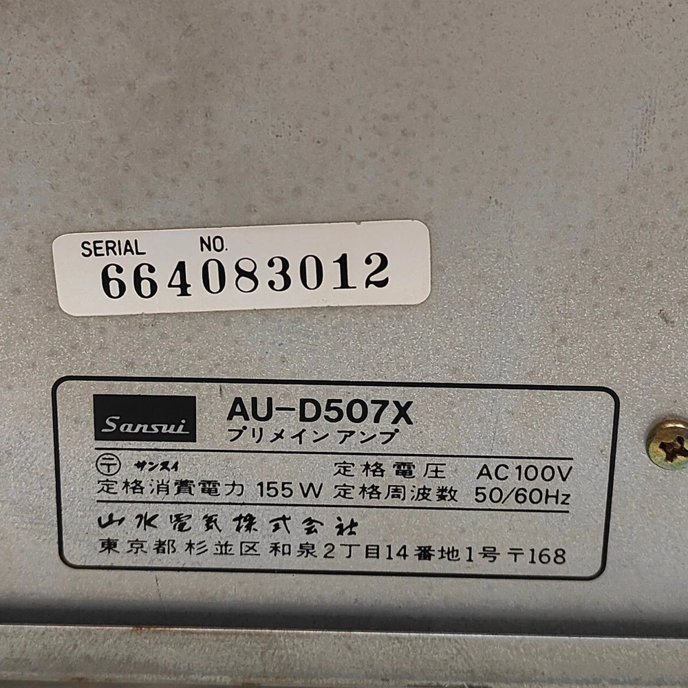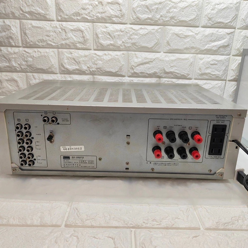 SANSUI AU-D507X Description The unit is in normal working condition. There is no noticeable scratch noise of concern. As it is a used item, there are minor scratches. Payment Buy it now: Please pay when you purchase. Auction: Please pay within 1 day after the auction closes. Shipping We will ship your order via DHL, FedEx, or Japan Post within 7 business days of purchase. A tracking number will be attached. Please bid with confidence. Terms of Sale We accept return items up to 60 days after the item has arrived. If you receive a defective product, please contact us. We will bear the return shipping costs. Please buy with confidence. International Buyers - Please Note: ・Import duties, taxes and charges are not included in the item price or shipping charges. These charges are the buyer’s responsibility. ・Please check with your country’s customs office to determine what these additional costs will be prior to bidding/buying. ・These charges are normally collected by the delivering freight (shipping) company or when you pick the item up - do not confuse them for additional shipping charges.