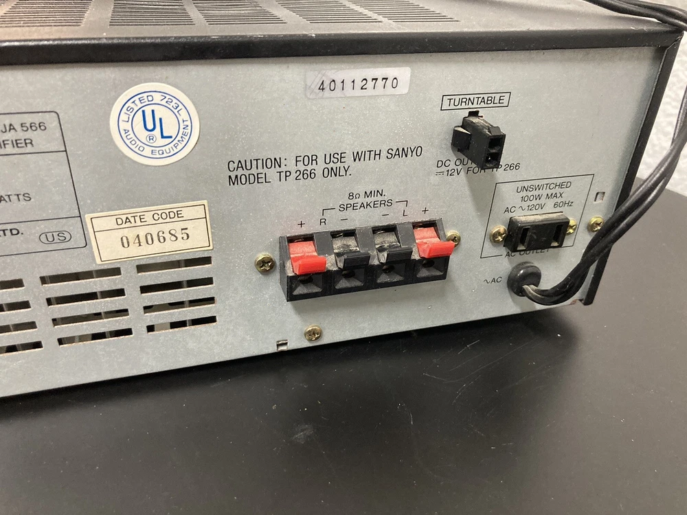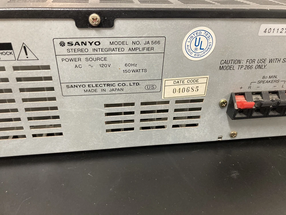 This Sanyo JA-566 Stereo Integrated Amplifier is a vintage piece of equipment that has been tested and works perfectly. With its sleek design and compact size, it is perfect for any home audio setup. The brand Sanyo is known for its high-quality electronic products and this amplifier is no exception. It is a great addition to any consumer electronics collection and is perfect for those who are looking for a unique and rare piece. The model JA-566 is a classic and is sought after by many audiophiles. This amplifier is made in an unknown country or region, adding to its mystery and allure. Next day shipping! No cords or speakers included. Good condition, tested, works! Thanks!
