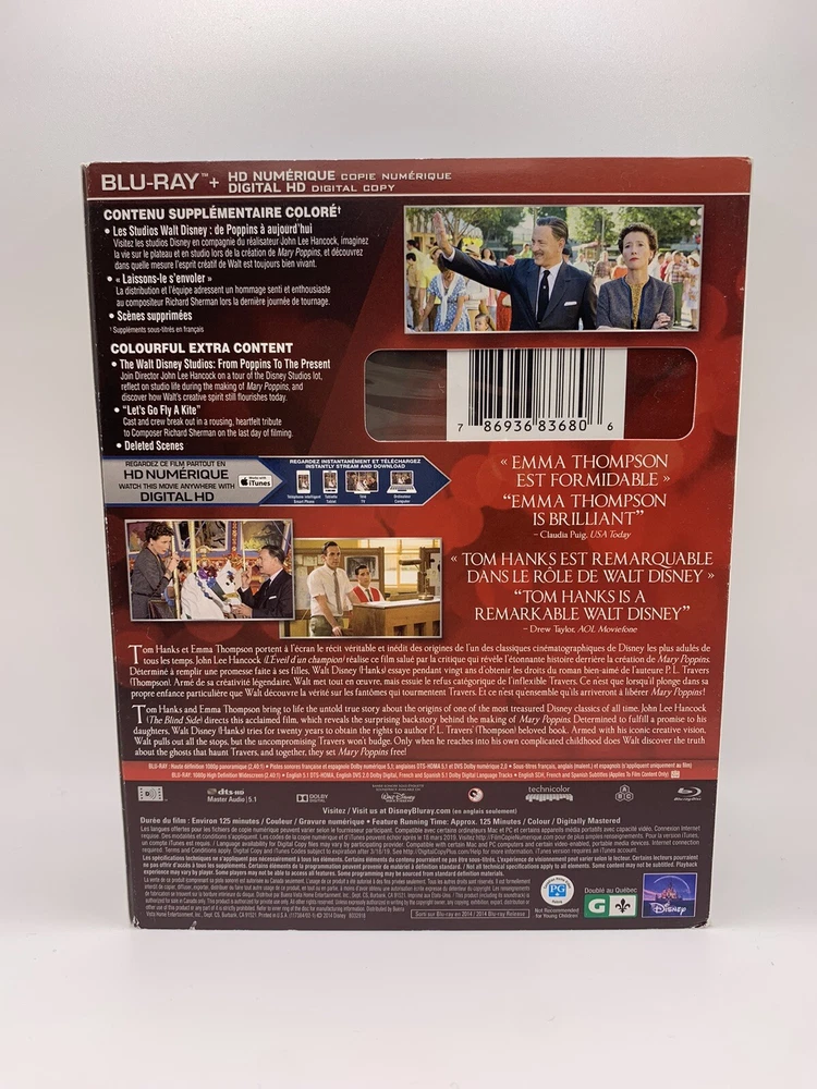 Titre du film/de l'émission télé: Sauvons M. Banks Genre: Enfants et famille Langue: Anglais, Espagnol, Français Édition: Édition standard Franchise: Disney Studio: Disney Format: Blu-ray Type: Film Code de région: DVD : 1 (É.-U., Canada...)