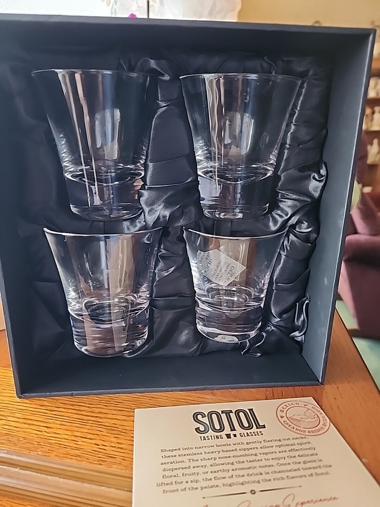 Elevate your sipping experience with this set of four SOTOL Clear Tasting Bar Glasses. Designed with the connoisseur in mind, these 6 oz. glasses are ideal for appreciating the nuanced flavors of your favorite spirits. The glasses are crafted to present your drinks in a clear, unadulterated form, allowing you to enjoy the purest taste without distraction. Each glass in this set is made to withstand the rigors of regular use, blending durability with a sleek, modern design. They're perfect for any setting, from a casual evening at home to a sophisticated gathering. The glasses also make a thoughtful gift, coming as they do in an original giftbox, ready to be presented to a friend or loved one who appreciates the finer things in life. New never used in excellent condition in original box