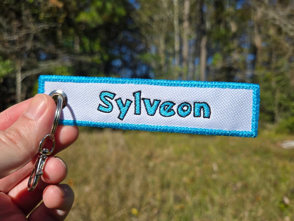 This is a Shiny Sylveon Jet Tag Keychain that I machine embroidered into waterproof canvas, it's perfect for accessorizing anything from your keyring to a lanyard or a backpack! This tag is made from waterproof canvas with a different design embroidered into the front and back. I also offer the option to have a custom name on the back of the Tag! The dimensions of this tag measure roughly 5x1in. If there is a certain character that you're interested in, please feel free to message me!
