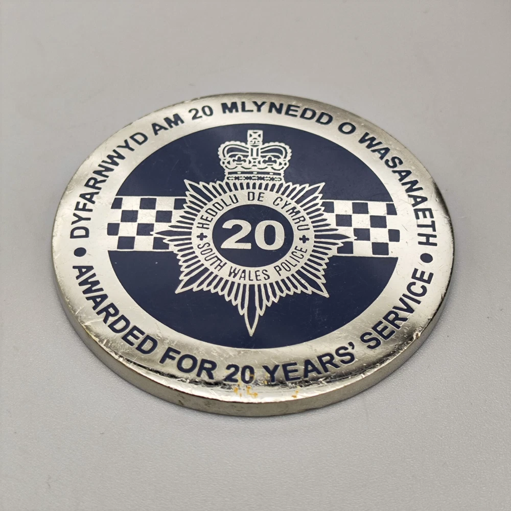 TITLE-- South Wales Police Aarded for 20 Years Service Challenge Coin SIZE-- Measures approx. 2 inches Used coins have imperfections, please see pictures SHIPPING -- Ships within 5 days of receiving payment. Your purchase will be carefully packaged and you can always check tracking information on eBay Purchase two and more and get a discount on shipping SERVICES -- If you have any questions, you can contact us at any time, we will reply you as soon as possible to solve your problem If you are not satisfied with your purchase for any reason, please contact us before leaving neutral or negative feedback, we will solve the problem for you properly