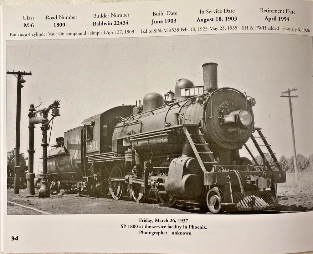 Southern Pacific Along the Golden State Route Pictorial, Tucumcari N.M. to Los Angeles, Ca. Southern Pacific Steam series Volume 39 is a book published in 2011 in the United States. It is part of a pictorial series focusing on Southern Pacific Railroad. The book contains photographs and information about the locomotive, providing a detailed look at its history and operations within the Southern Pacific Railroad system. This collectible item is a valuable resource for enthusiasts and historians interested in railroadiana and trains from the 20th century. Each page features a stunning black and white photograph of a steam locomotive with information including model number, road number, build number, build date, retirement date, location of the photograph, date of photograph and photographer.