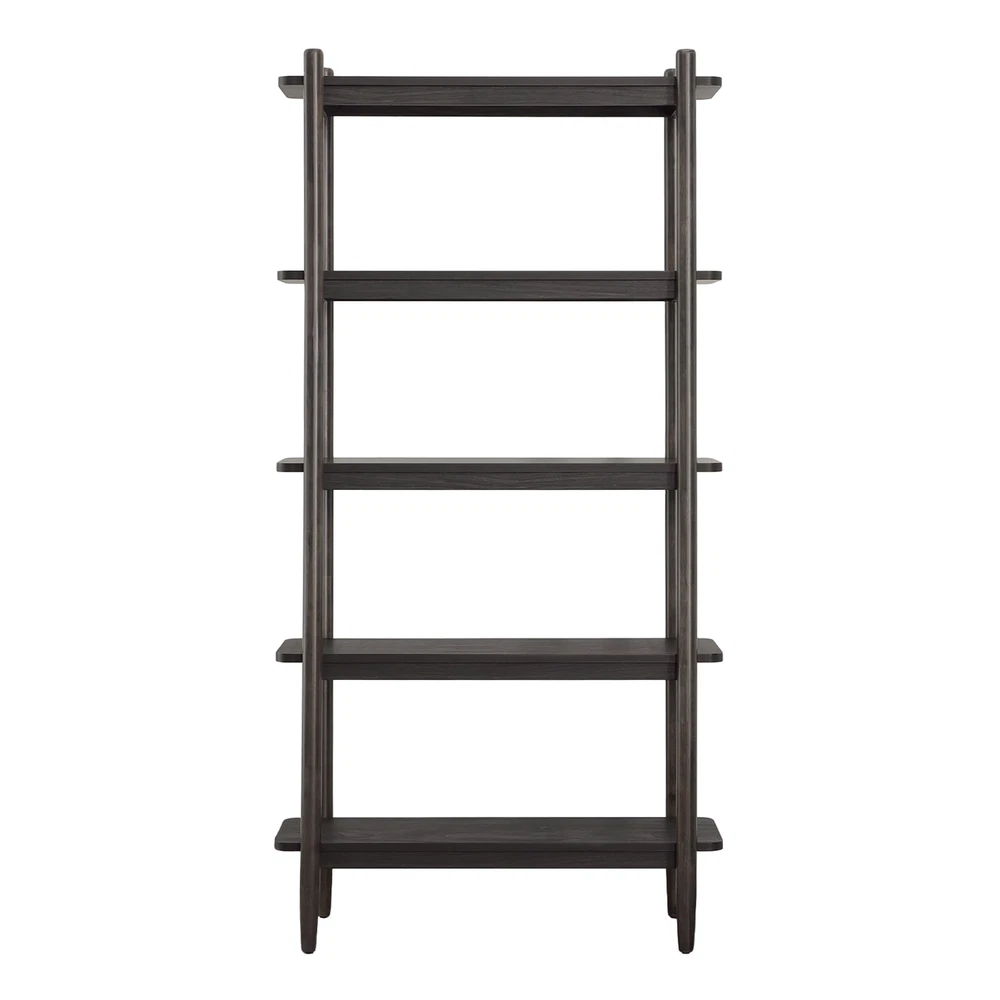 This chic, open bookshelf from the Better Homes & Gardens® Springwood Collection will offer a versatile and trendy solution to any storage dilemma. The large shelves of this 5 shelf bookshelf are a perfect place to display home décor items like decorative plants, an array of knick-knacks and collectibles, and framed photos of your family and friends. Standing on fashionably tapered legs, this tall bookcase with five spacious shelves will provide the room to store a collection of novels, children’s books, or organizing totes or baskets. Mix and match any number of items on this tall, display bookcase. There’s room for everything! Its beautiful and bold design makes this open bookshelf a great addition to the living room, office, or even in the bedroom. Any room in the home will benefit from the neutral tones of this dark, Charcoal finish. Finished on all sides for any angle of placement, this beautiful 5-shelf bookcase will create functional storage solutions without sacrificing style. Assembled Dimensions: 35.98" L X 14.88" W X 71.97" H Open shelving for storage and display Holds books, binders, framed photos, collectibles, and more Solid Wood Accents Charcoal finish Model #: 434761 Box Dimensions: 77.01" L x 17.13" W x 6.89" H