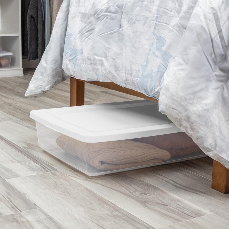 Stackable Clear Plastic Storage Box Under Bed Organizer for Home
