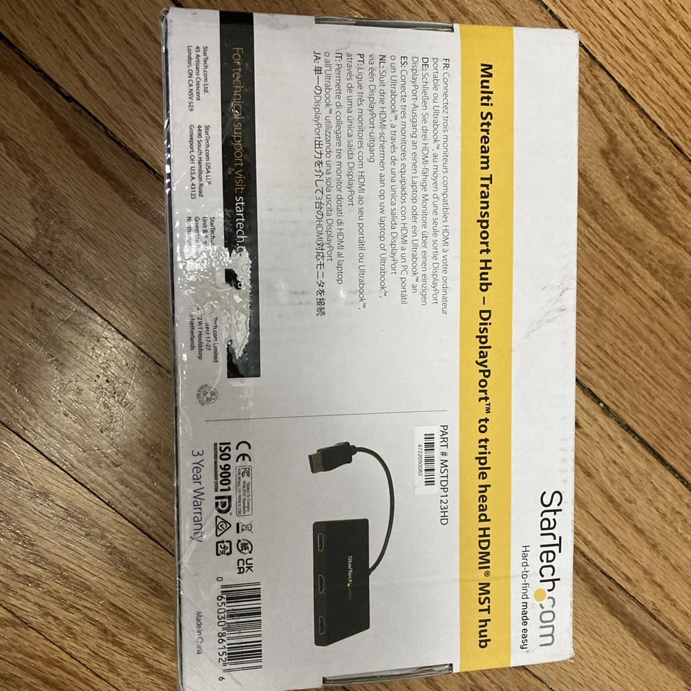 Brand: StarTech Model: MSTMDP123HD Connector(s) B: HDMI Standard Female Custom Bundle: No UPC: Does not apply Connection Split/Duplication: 1 : 3 Connector A: Mini DisplayPort gtin13: Does not apply MPN: MSTMDP123HD Country/Region of Manufacture: Unknown Color: Black