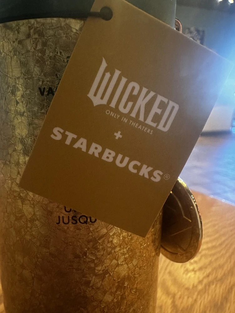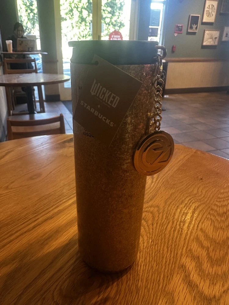 Starbucks 2024 Wicked Collection Gold Crackle Cold Cup with Oz Charm 16OZ NWT - All that glitters really is gold with this shimmering cold cup that celebrates the Land of Oz. - Limited Edition - Cold drinks only
