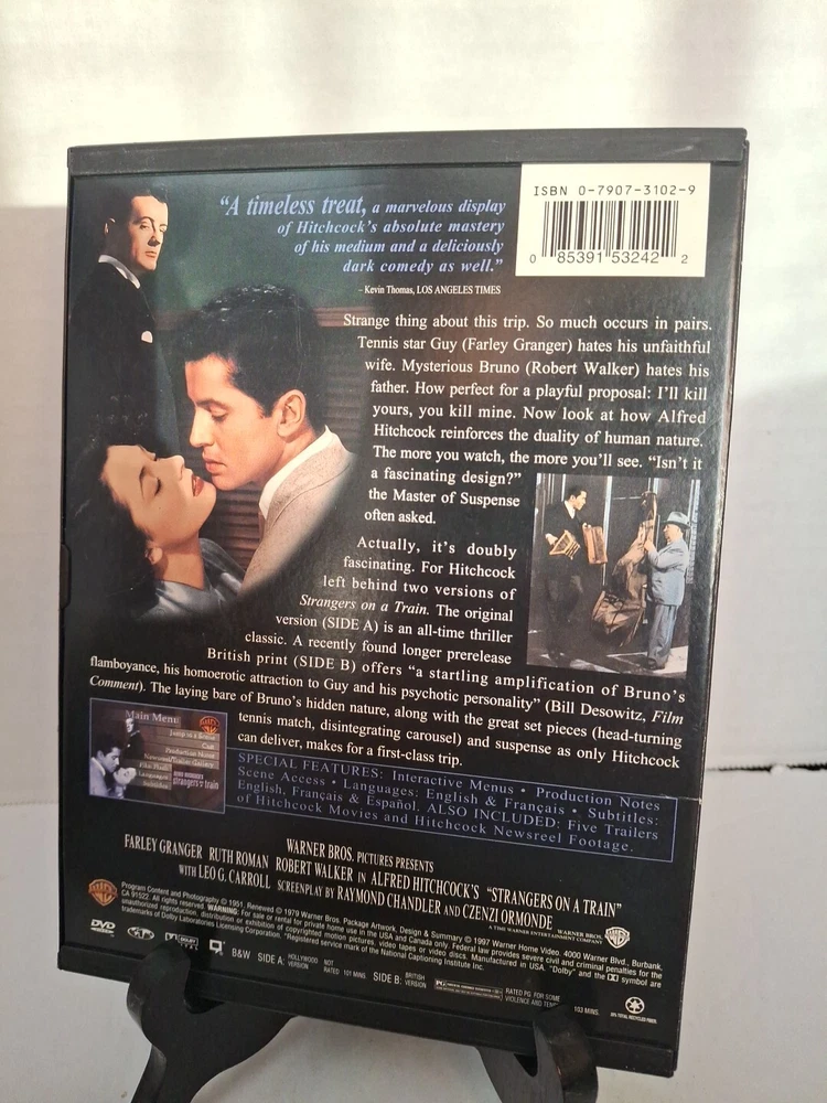 gtin13:Does not applySub-Genre:NoirGenre:ThrillerActor:Farley GrangerMovie/TV Title:Strangers on a TrainType:MovieDirector:Alfred HitchcockUPC:Does not applyFormat:DVD