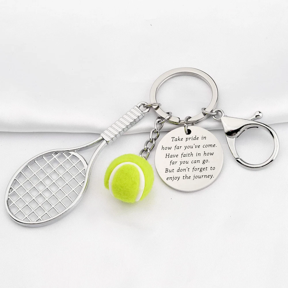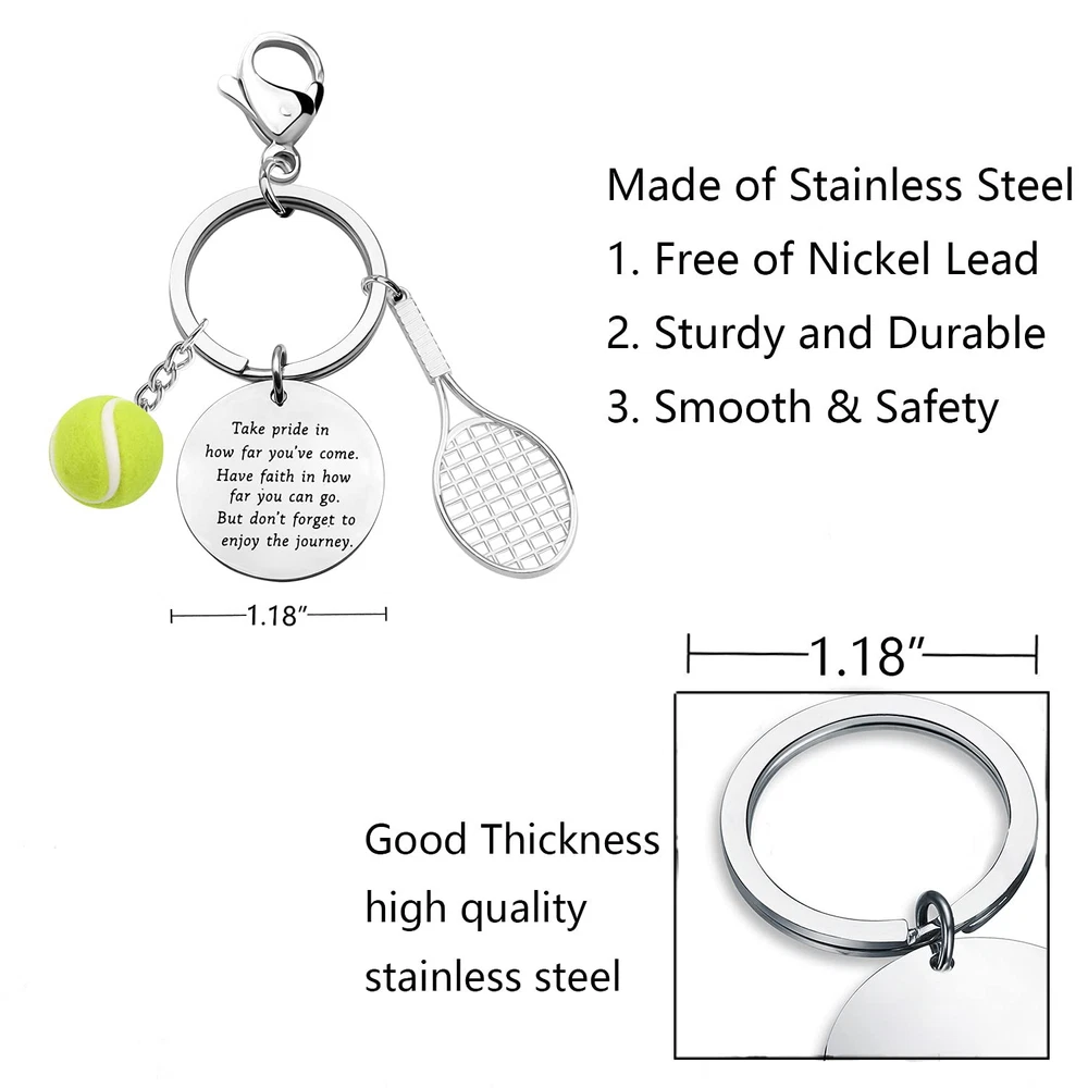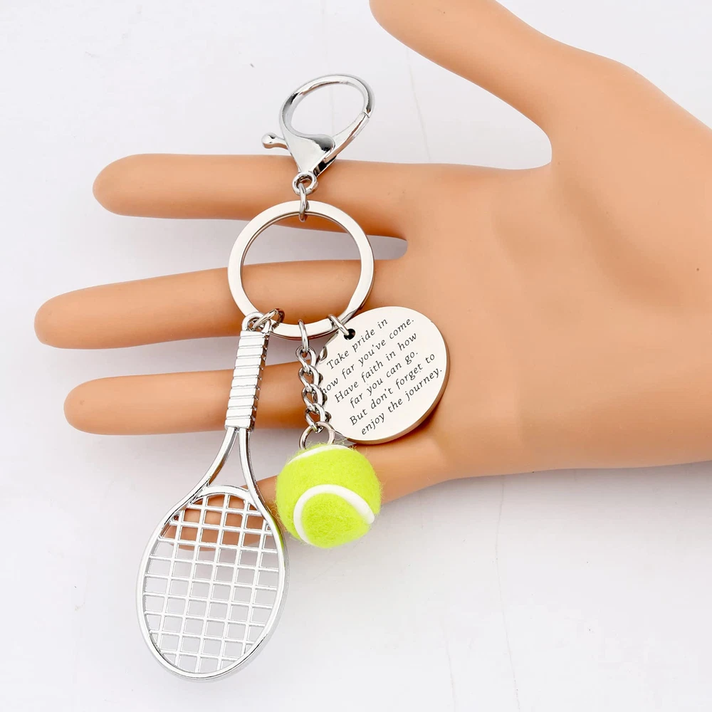 Description Tennis Keychain Gifts for Tennis Players Tennis Team Gifts for Tennis Lover Tennis Balls Keychain PACKAGE Each Tennis Ball Keychain Comes in a Elegant velvet jewelry pouches and ready for gift giving. MATERIAL&SIZE This tennis team keychain charms Made of Environmentally Stainless Steel, Safety and non-deformation. Key chain pendant 1.18 inches diameter. keyring diameter: 1.18inches. This tennis keychains make the Perfect Gift For Tennis Players, Tennis Teams and Tennis Coaches for birthday, end of season, tournaments or just because. This is a special gift for who like to play tennis. It will keep you company with tennis and become an important part of your life. Great tennis gift for tennis players. This gift for tennis lover, gift for tennis fan, gift for tennis player, gift for tennis coach, gift for tennis instructor, gift for tennis team.