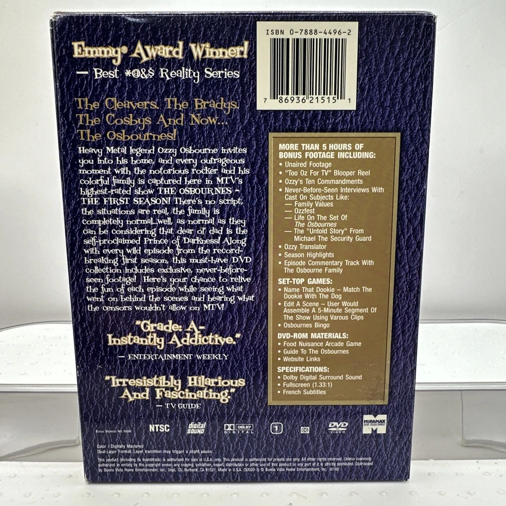 Format:DVDGenre:ComedyMovie/TV Title:Osbournes-The First SeasonActor:Kelly Osbourne, Sharon Osbourne, Ozzy Osbourne, Jack OsbourneRating:NRUPC:0786936215151Release Year:2003Seller Notes:“Pre-owned in good condition.”gtin13:0786936215151Edition:Uncensored