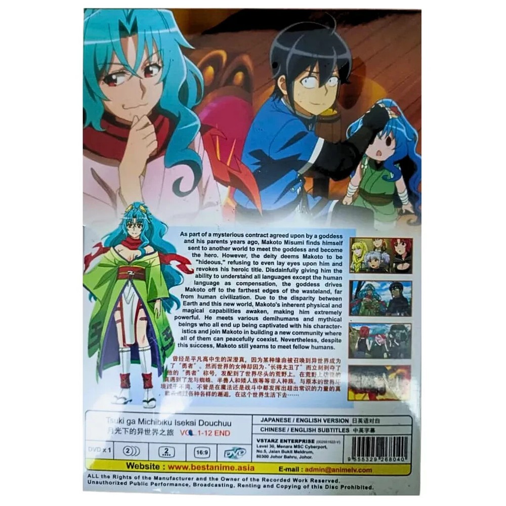 TSUKI GA MICHIBIKU ISEKAI DOUCHUU (a.k.a TSUKIMICHI -MOONLIT FANTASY) - COMPLETE TV SERIES with ENGLISH DUBBED Weight: 169g Japanese Animation DESCRIPTION: Condition: NEW, Original & Licensed Item Format: ALL Region Language: Japanese / English Subtitle: English / Chinese Number of Episodes: 1 – 12 (End) Number of Discs: 1 SYPNOSIS: As part of a mysterious contract agreed upon by a goddess and his parents years ago, Makoto Misumi finds himself sent to another world to meet the goddess and become the hero. However, the deity deems Makoto to be "hideous," refusing to even lay eyes upon him and revokes his heroic title. Disdainfully giving him the ability to understand all languages except the human language as compensation, the goddess drives Makoto off to the farthest edges of the wasteland, far from human civilization. Due to the disparity between Earth and this new world, Makoto's inherent physical and magical capabilities awaken, making him extremely powerful. He meets various demihumans and mythical beings who all end up being captivated with his characteristics and join Makoto in building a new community where all of them can peacefully coexist.N Nevertheless, despite this success, Makoto still yearns to meet fellow humans. In a world where the goddess herself has barred him from interacting with his kind, it is up to Makoto and his companions to fulfill his desire—and perhaps reform society along the way.