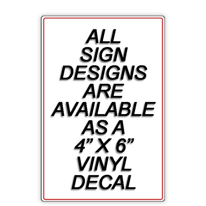 8" x 12" ALUMINUM SIGN .025 Thick Two 1/4" mounting holes centered in the 8" side Treated with Ultra UV Protection to prevent fading Printed directly onto the sign No decals or paint Won't fade, crack, peel or chip EVERYTHING THAT WE SELL IS 100% MANUFACTURED IN THE UNITED STATES SINCE 1998 Thank you for supporting a family owned business This Item Is Also Available In Our Other Listings As An Aluminum Sign / Magnetic Sign / Vinyl Decal / Yard Sign Contact us for assistance and we'll provide the version that works best for you PREMIUM QUALITY Made In The U.S.A. FAST SHIPPING 100% COMPLETE SATISFACTION GUARANTEED Your item will arrive quickly and in perfect condition. If there is anything about the transaction that doesn't meet your expectations, or if your item is damaged in shipping by the post office, Please send us a message and give us the opportunity to address your concern We promise to correct all problems to your complete satisfaction as quickly and easily as possible.