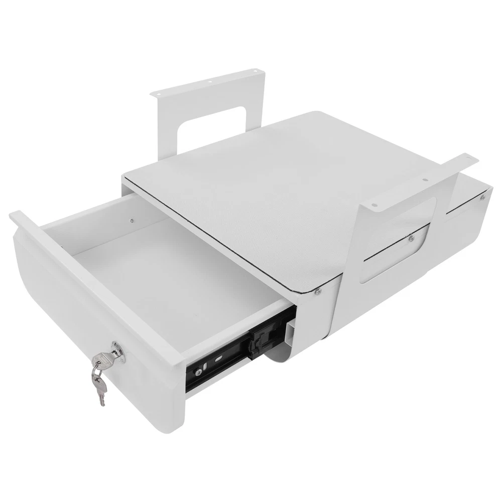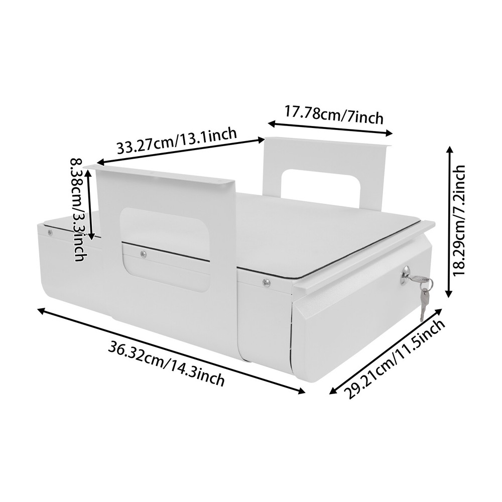 Have a nice day~ Description This sliding pull-out drawer is very suitable for use in offices and study rooms. Premium material and exquisite workmanship ensure its beauty and durability. The pull-out design makes accessing files and items simple and convenient, and the locking design can better protect your privacy. Its large size provides enough space to organize your items and keep your office and study environment tidy. With it, you will enjoy a more convenient life. Key Features Last for Years: It is made of premium steel with welding and painting processes, which is scratch-resistant, abrasion-resistant, rust-resistant , and sturdy, ensuring aesthetics and long-term use. Excellent Organizer: The 11.5*14.3-inch large drawer, top additional platform, and 4.4 lbs proper load capacity provide enough space and ability to store various files and items. Space Optimization: Its under-desk mounting method utilizes the under-desk space cleverly to expand the storage space to keep your desktop clean and organized. User Friendly: The smooth sliding device and embedded handle design allow you to pull out the drawer easily and quietly, making it more convenient to access items. Moreover, the lockable design can better protect your privacy, ensuring the security of your personal belongings and confidential documents. Simple Installation: With complete accessories and a simple structure, you can easily install it and put it into use quickly! Easy to Clean: It has a simple construction and smooth surface, so you can wipe the stains off its surface with a damp rag. Ideal Gift: Thanks to its practicality and beauty, you can give it to your friends as a Christmas or housewarming gift! Modern Appearance: The simple and elegant style, as well as the classic white color, make it compatible with various drawer styles and enhance the overall beauty. Details Rounded Corners: This design is comfortable to touch, can care for your skin, and enhances the design of this product. Spare Key: It has two keys and you can use one as the spare key for emergency use. Rubber Pad: It can effectively prevent slipping and improve the safety of item placement. Application It is installed under the tabletop and can store various items, such as books, iPads, phones, pens, pencils, glue, erasers, adapters, earphones, cosmetics, or other small items used regularly. It fits both standing desks and standard fixed-height workstations. Specification Color: White Shape: Rectangular Material: Steel, Rubber Process: Welding, Painting Assembly Required: Yes Mounting Type : Under Desk Applicable Min. Desktop Thickness: 20mm/0.79in Load-bearing Capacity: 2kg/4.4 lbs Desk Bottom to Drawer Top: 8.38cm/3.3in Each Mounting Bracket Length: 17.78cm/7in Each Mounting Bracket Height: 18.3cm/7.2in Installed Bracket Spacing : 33.27cm/13.1in Drawer Size(L*W): 29.21*36.32cm/11.5*14.3in Package Size: 38.5*32*6cm/15.16*12.6*2.36in Gross Weight: 4.7kg/10.36 lbs Net Weight: 4.2kg/9.26 lbs Package Included 1* Under Desk Pull-out Drawer 2* Keys 1* Pad 2* Mounting Brackets Other Accessories for Assembly Notes Please measure your desk size before purchasing. Please ensure that your desk can support the total weight of the drawer and its load capacity. Please allow the slight color difference caused by the shooting light and 1-3cm error due to manual measurement and make sure you do not mind before ordering. Payment Delivery details Terms of sales About us Contact us Payment We accept ebay payment 。 Fees such as import duties, taxes are not included in the item price or shipping costs. These charges are the buyer's responsibility. Delivery details Shipping: 2-9 working days to: USA Terms of sales We maintain high standards of excellence and strive for hundred percent customer satisfaction. Feedback is very important to us. We hope that you contact us immediately before you give neutral or negative feedback, so that we can address your concerns. It is impossible to address issues if we do not know about them! About us Your satis faction is our ultimate goal. We work hard to earn your trust and future business. Our certified technicians have tested each item before shipping. The unit comes with 1 year limited warranty on all manufacturing defects. a) If you receive a defective item, you may return it or ask for a discount. Please contact us within 14 days after you receive the package. b) What you returned must be intact and in its original packaging as re? u. Customer is responsible for shipping costs of the returned item. c) We will cover the cost of shipping back t with the shipping rate indicated in the registration page. We will send you a new unit or refund the full payment you paid. Thank you. Contact us Business Hour Business Hour: Monday To Friday: 8:30 AM to 5:00 PM (Beijing China time) Due to time zones, our reply to your questions may not be immediately. But within above working time, we will reply your email within 24 hours. If it's non-workdays, please kindly be patient and wait till Monday. Please contact us with ebay message. Please feel free to contact us if you have any questions. Monday To Friday: 8:30 AM to 5:00 PM (Beijing China time) Due to time zones, our reply to your questions may not be immediately. But within above working time, we will reply your email within 24 hours. If it's non-workdays, please kindly be patient and wait till Monday. Please contact us with ebay message. Please feel free to contact us if you have any questions.
