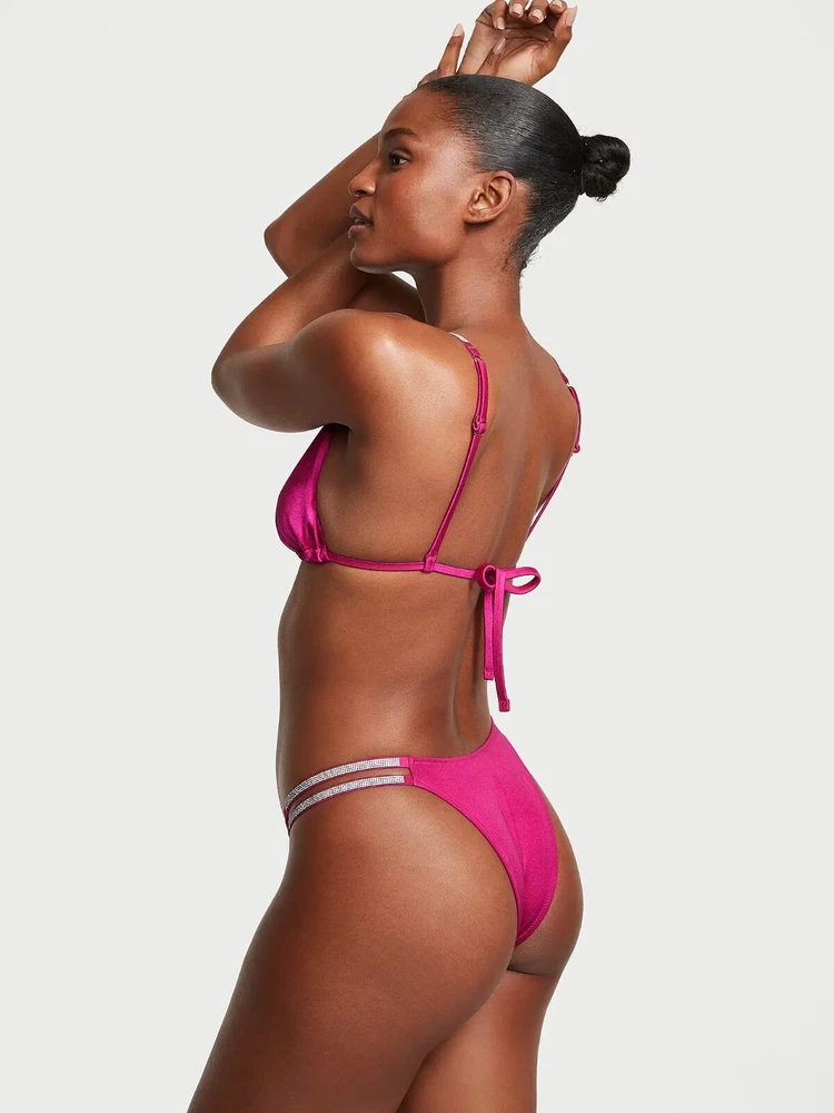 Victoria's Secret Swim Double Shine Strap Brazilian Bottom Berry Blush Infused with plenty of glam, this pair dazzles with skinny, double shine straps that glitter in the sun. *BRAZILIAN BIKINI BOTTOM ONLY* This is not a set. Low rise High-cut leg Double rhinestone straps Minimal back coverage: lots of cheek peek Hand wash Sizes: S, L