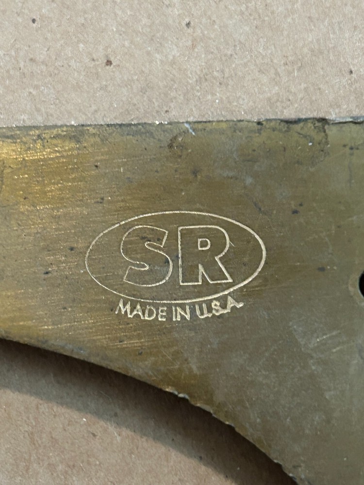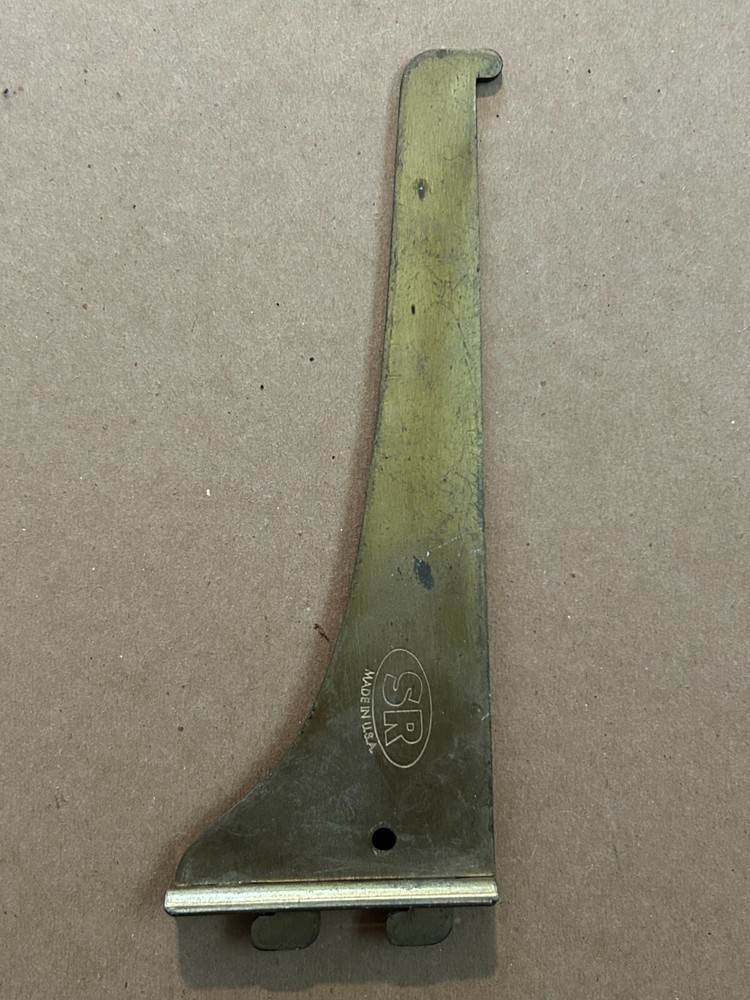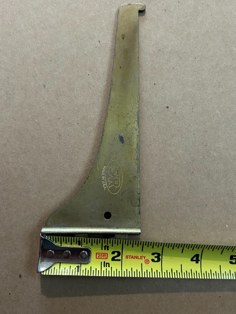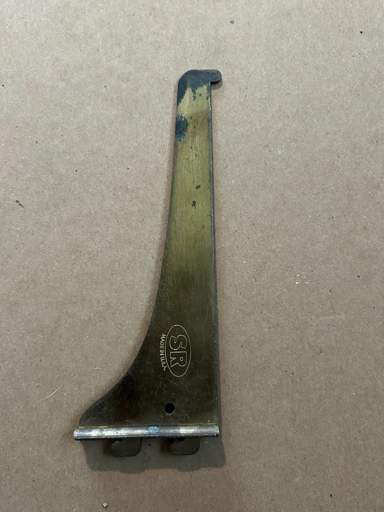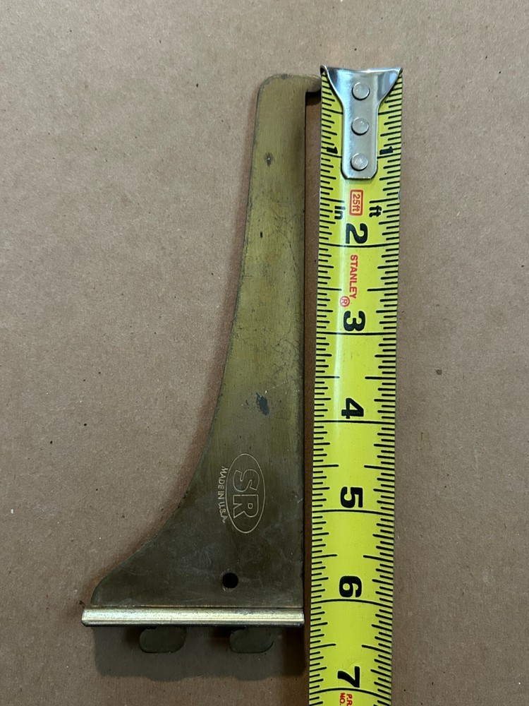 Brand: SR (Made in USA) Type: Brass Shelf Bracket Material: Brass Dimensions: Length: 6.5 inches Width: 2.5 inches Condition: Pre-owned, with minor wear and scratches (visible on the surface). Application: For vintage shelving projects or replacements. Features: Durable, sturdy, and lightweight. For sale is a vintage SR brass shelf bracket, made in the USA. The bracket measures 6.5 inches in length and 2.5 inches in width. Crafted from high-quality brass, this bracket shows minor wear and scratches but remains fully functional. Perfect for vintage shelving projects, restorations, or replacements. Keywords: vintage brass bracket, SR Made in USA, brass shelf support, retro shelf bracket, brass hardware.