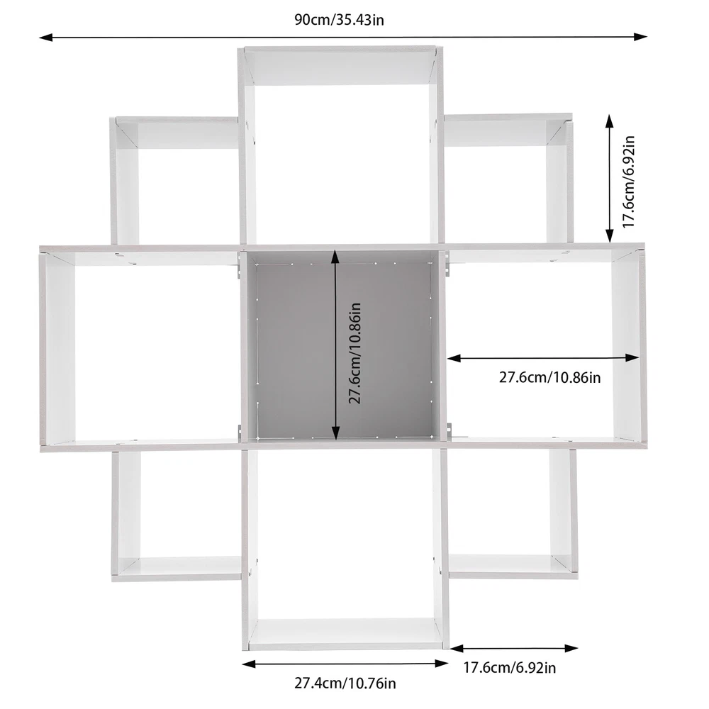 Specifications Material: PVC Board Style: Modern Color: White Mount Type: Wall Mounted Assembly Required: Yes Number of Tiers: 3 Number of Compartments: 9 Load Capacity: 30kg/66.1lbs Total Length: 90cm/35.43in Large Compartment: 27.6*27.6cm/10.86*10.86in Medium Compartment: 27.6*27.4cm/10.86*10.76in Small Compartment: 17.6*17.6cm/6.92*6.92in Gross Weight: 7.5kg/16.5lbs Package Size: 97*24*7cm/38.2*9.4*2.8in Package Included 1*Book Shelf 1*English Installation Diagram 1 Pair*Gloves All Accessories for Installation Wall Mounted Display Bookcase Book Shelf Home Decor Storage Rack Shelving Unit Description With its beautiful design, this bookshelf is not only a superb addition to your book collection but also a sophisticated addition to your study. Its 9 compartments are designed to provide you with ample storage space, offering a variety of configuration options for your book and item storage solutions. As a lover of object collection, this bookshelf is not only convenient for storing your precious collectibles but also serves as a delightful accent that enhances the ambiance of your living space. Key Features Selected Material : The product is mainly made of PVC board, which is environmentally friendly, with good hardness and toughness, and long-term use. Spacious Storage Space: The 9 compartments with three sizes provide you with plenty of space to sort and store books of different sizes. You can also place your favorite vases and books on the top platform. Strong Bearing Capacity : High-quality materials and strong screw fixing allow this product to have a strong load-bearing capacity(up to 66.1 lbs), thus providing greater security for your object's collection. Convenient to Install : Complete accessories, pre-drilled holes, and a detailed English installation diagram allow you to complete the installation and start using it in a short period. Space-saving : The wall-mounted design can effectively utilize wall space without taking up floor space, helping you plan your room and save space. Effortless Clean : With its open construction and smooth surface, you can simply rinse it with water or wipe off surface dust with a damp rag. Exquisite Gift: This functional and aesthetically pleasing product is an ideal gift for Christmas, birthdays, wedding parties, Valentine's Day, anniversaries, Father's Day, Mother's Day, housewarming, New Year's Day, and university graduation. Protective Package: To prevent the product from being damaged during transportation, we packed it with foam to protect your products to the maximum extent possible. Details Open Storage Compartment : Open storage compartments make it possible to display your books and other collectibles, and it's also easy to grab and go. Smooth Surface : The product has a smooth, flat, burr-free surface, making it safer to install and easier to clean. Application It is suitable for study, office, kitchen, bedroom, and living room to organize cutlery, cups, cosmetics, office supplies, stationery, files, collectibles, and other items. Specifications Material: PVC Board Style: Modern Color: White Mount Type: Wall Mounted Assembly Required: Yes Number of Tiers: 3 Number of Compartments: 9 Load Capacity: 30kg/66.1lbs Total Length: 90cm/35.43in Large Compartment: 27.6*27.6cm/10.86*10.86in Medium Compartment: 27.6*27.4cm/10.86*10.76in Small Compartment: 17.6*17.6cm/6.92*6.92in Gross Weight: 7.5kg/16.5lbs Package Size: 97*24*7cm/38.2*9.4*2.8in Package Included 1*Book Shelf 1*English Installation Diagram 1 Pair*Gloves All Accessories for Installation Notes We recommend that it be installed by two people. This product does not include books and other decorations. Please allow the slight color difference caused by the shooting light and 1-3cm error due to manual measurement, and make sure you do not mind before you order. Payment Delivery details Terms of sales About us Contact us Payment We accept ebay payment 。 Fees such as import duties, taxes are not included in the item price or shipping costs. These charges are the buyer's responsibility. Delivery details Shipping: 2-9 working days to: USA Terms of sales We maintain high standards of excellence and strive for hundred percent customer satisfaction. Feedback is very important to us. We hope that you contact us immediately before you give neutral or negative feedback, so that we can address your concerns. It is impossible to address issues if we do not know about them! About us Your satis faction is our ultimate goal. We work hard to earn your trust and future business. Our certified technicians have tested each item before shipping. The unit comes with 1 year limited warranty on all manufacturing defects. a) If you receive a defective item, you may return it or ask for a discount. Please contact us within 14 days after you receive the package. b) What you returned must be intact and in its original packaging as re? u. Customer is responsible for shipping costs of the returned item. c) We will cover the cost of shipping back t with the shipping rate indicated in the registration page. We will send you a new unit or refund the full payment you paid. Thank you. Contact us Business Hour Business Hour: Monday To Friday: 8:30 AM to 5:00 PM (Beijing China time) Due to time zones, our reply to your questions may not be immediately. But within above working time, we will reply your email within 24 hours. If it's non-workdays, please kindly be patient and wait till Monday. Please contact us with ebay message. Please feel free to contact us if you have any questions. Monday To Friday: 8:30 AM to 5:00 PM (Beijing China time) Due to time zones, our reply to your questions may not be immediately. But within above working time, we will reply your email within 24 hours. If it's non-workdays, please kindly be patient and wait till Monday. Please contact us with ebay message. Please feel free to contact us if you have any questions. Brand Unbranded Item Height n/a Item Length n/a Item Width n/a Number of Shelve