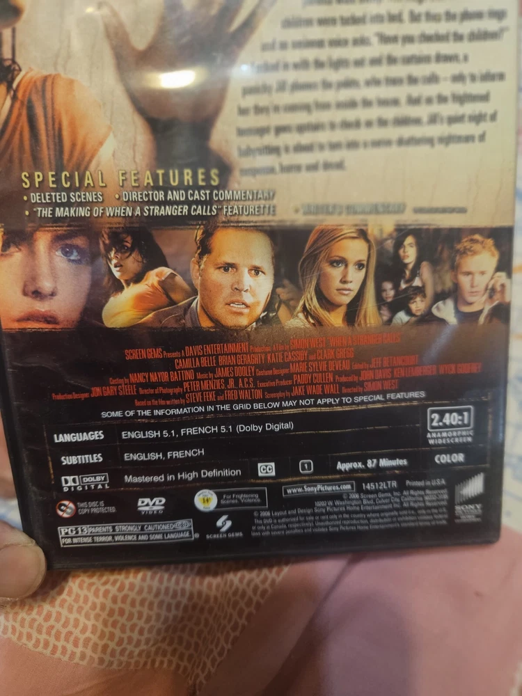 Get ready for a thrilling experience with "When a Stranger Calls" on DVD. This estate item is in great shape and comes in its original tall/DVD case. The movie features Camilla Belle and is directed by Simon West. With a PG-13 rating, this horror/suspense movie is perfect for those who love a good scare. The DVD includes special features such as commentary, behind the scenes featurette, deleted scenes, and more. The movie is in English and French with a release year of 2006 from Sony Pictures. Don't miss out on this fantastic addition to your movie collection. Estate item sold in an As Is Condition Good Condition combined shipping available