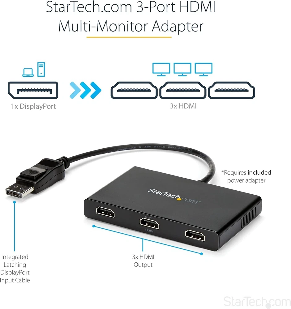 Windows-Compatible 3-Port DisplayPort to HDMI MST Splitter - Triple Monitors