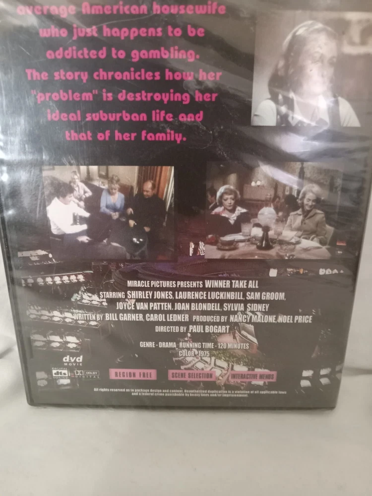 Experience the thrill of gambling with "Winner Take All" on DVD. This classic drama features Shirley Jones and Joyce Van Patten, and is presented in full screen edition. The DVD is compatible with all regions and has a running time of 120 minutes. This DVD comes in a standard jewel case and is rated NR. It is not a former rental and has not been released in 1975. The features of this DVD include Coleo and the language is in English, American English. "Winner Take All" is a must-have for gamblers and drama enthusiasts alike.