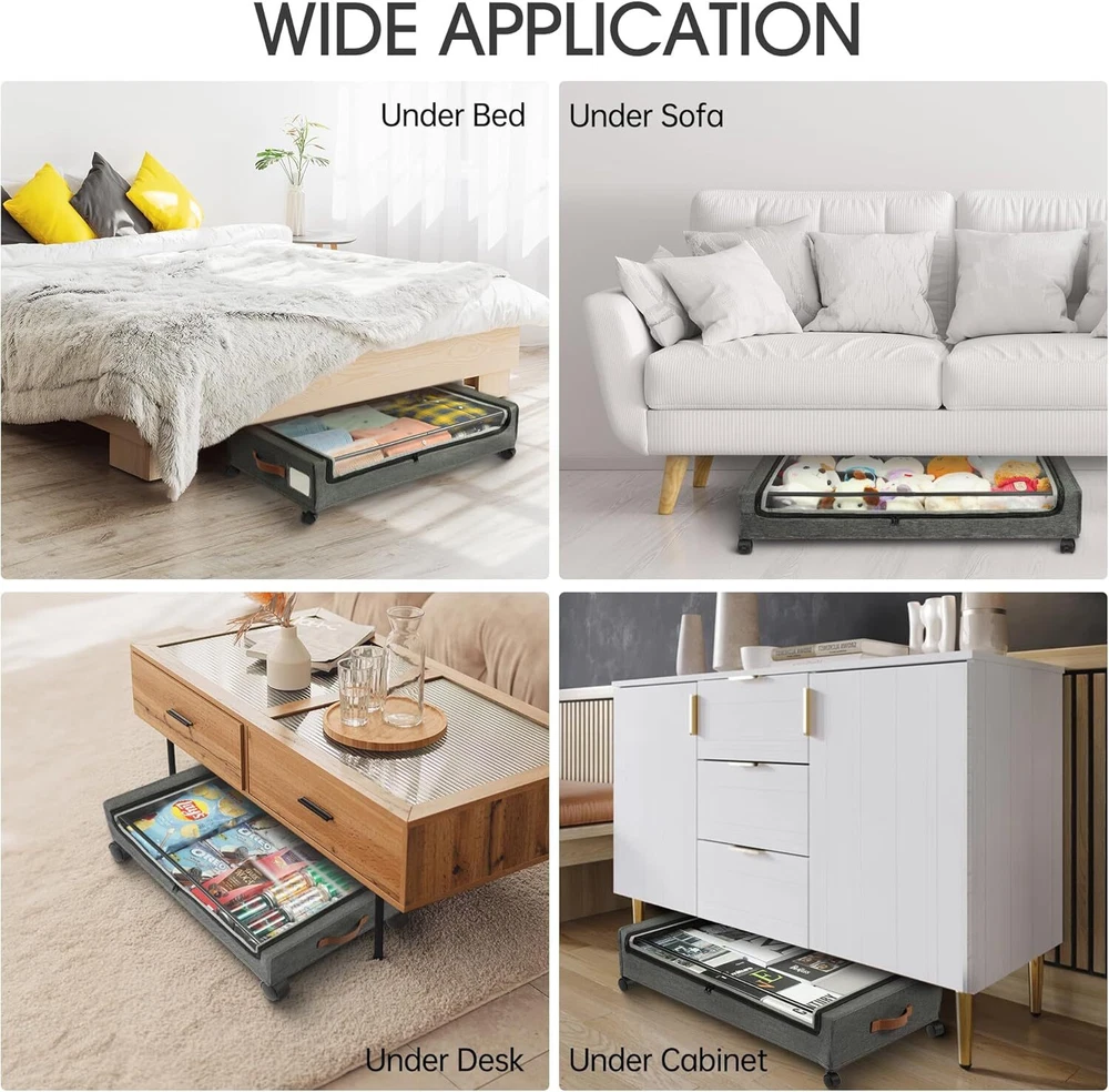 Brand Yecaye Color Hemp Grey Material PU Fabric and Metal Special Feature Wheeled Style Minimalist About this item 300D PU Fabric Hold Up to 66lbs: Yecaye under bed storage with wheels is made of high quality 300D PU fabric and sturdy metal frame, can hold up to 66 lbs, stronger than other fragile metal mesh, spacious capacity perfect for storing clothes, toys, books, shoes and other heavy items also won't compromise stability and durability 360°Rotating Silent Wheels: Say goodbye to constantly carrying heavy storage boxes around your house.This under bed rolling storage comes with 4 x 360°rotating wheels,two of which have locking function.When you need it to remain stationary, just press the locking mechanism gently. No matter how full the cart is, adults and children can easily slide on the floor and carpet Clear Window & Label: Our rolling underbed storage bins are equipped with a Clear window, you can clearly see the stored items, say goodbye to the trouble of misplacing items. Additionly, the included label is great for labeling contents, allowing you to quickly identify and find the item you're looking for without having to open multiple containers or boxes Versatility: Under bed shoe storage dimensions:30.71 x 16.93 x 6.69 inches (with wheels), (applicable under-bed height > 6.7in), large capacity exceeds your expectation to store more daily items. It can be placed under beds, sofas, tables, and closets to maximize unused space. In addition, this under bed storage drawers can be folded up when not in use, perfect for small families and college dorms that need extra storage space Easy to Install: This rolling storage bin is designed to easy installation and hassle free.Including user-friendly instruction and require minimal effort to set up, which also means you can quickly install and utilize the underbed storage space,saving valuable time and effort,ideal for bed rotting, the blind, and seniors with mobility issues Technical Details Brand Yecaye Color Hemp Grey Material PU Fabric and Metal Special Feature Wheeled Style Minimalist Recommended Uses For Product For Under Bed Storage Product Dimensions 30.31"L x 16.54"W x 6.69"H Capacity 45 Liters Closure Type Zipper Water Resistance Level Waterproof Item Weight 8.82 Pounds Opening Mechanism Zipper Shape Rectangular Pattern Plain Number of Items 2 Storage Volume 45 Liters Number of Compartments 1 Unit Count 2.0 Count Item Package Quantity 1 Material Feature Waterproof Occasion Home Maximum Weight Recommendation 66 Pounds Manufacturer YECAYE Item Weight 8.82 pounds Country of Origin China Size 2 Pack Number Of Pieces 2 Special Features Wheeled Batteries Required? No