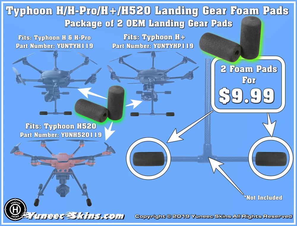Landing Gear Foam Pads/Foam Dampers/4-Pack Fits: Yuneec Typhoon H & H-Pro Yuneec Typhoon H+ Yuneec Typhoon H520 Sale Includes: Package of 4-Yuneec OEM Landing Gear Foam Pads/Dampers