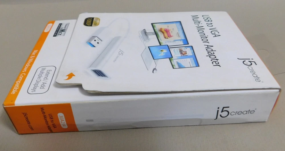 j5create USB to VGA Adapter Cable 1080p HD Multi-Monitor Display Windows Mac NIB Pictures of Open Box are for reference on item inside box. You will receive a NEW IN BOX Sealed package New in Box - Box may have some shelf wear - see pictures for actual condition. See pictures of the back of the box for more application information Please see all pictures as they are part of the description. This is the actual item that you will receive Please ask any questions prior to purchase I do combine shipping Please check Shipping Details for additional shipping methods offered. Costs may vary depending on your location